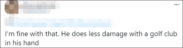 “我觉得还好,他手上拿着高尔夫的破坏力更小一点。”