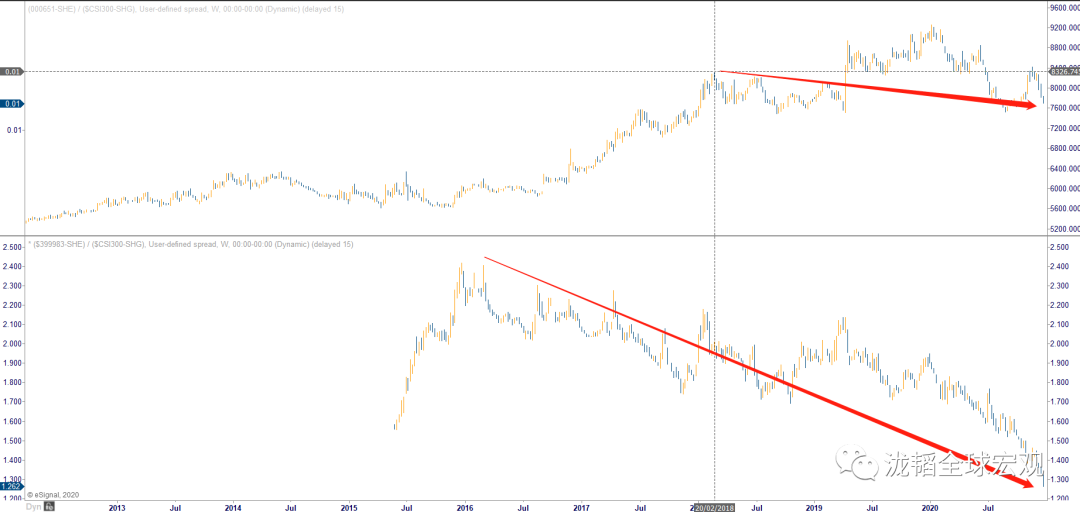 从下图看,2016年起,沪深300地产开始跑输沪深300;从2018年开始去杠杆起,格力至今跑输沪深300。董小姐和雷军设赌局的时候,也许没有看到地产失宠,科技互联网上升的新beta。