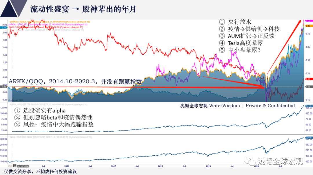 但是从风险归因的角度,(抱着学习的态度)我认为把ARK封神,还为时过早,因为今年他们的业绩除了确实选股alpha之外,有很多偶然的beta。