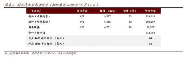 而智能汽车方面,在浩浩荡荡的汽车电动化势头下,市场反应明显。目前特斯拉以超6200亿美元的市值,远超丰田、大众、戴姆勒等传统汽车制造公司。这其中,特斯拉最核心的应用软件FSD备受关注,摩根士丹利对这部分的股价估值约占总体股价的1/3。同时,蔚来、小鹏等中国造车新势力也不断攀升,蔚来的市值甚至超过了710亿美元。根据中金报告显示,蔚来软件部分估值占到市值的1/2。参考以上造车新势力软件部分的估值,Apollo智能汽车价值仍有上升空间。