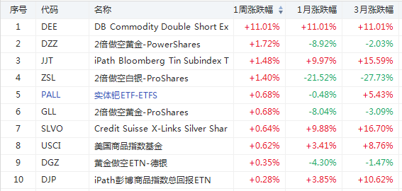 由于节前交投清淡,刺激法案迟迟未有推进,上周商品ETF表现平平。