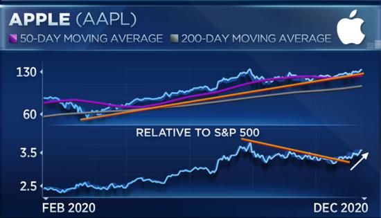 Piper Sandler首席市场技术员Craig Johnson在CNBC采访时表示,投资者需要坚持买入今年的赢家,苹果公司绝对是今年圣诞节的最佳选股。到目前为止,苹果是道指2020年表现最好的公司。股价上涨了78%,几乎是微软涨幅的两倍。Johnson说,从图形上来看,苹果公司目前依然处于上升趋势,该股目前有所回调并重新测试了之前的高点。因此,从他的角度来看,他会坚持持有苹果公司。