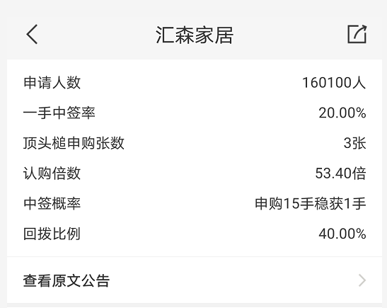 总认购人数16.01万,11.38万人只认购1手(一手党),中签率20%,申请15手稳获1手。
