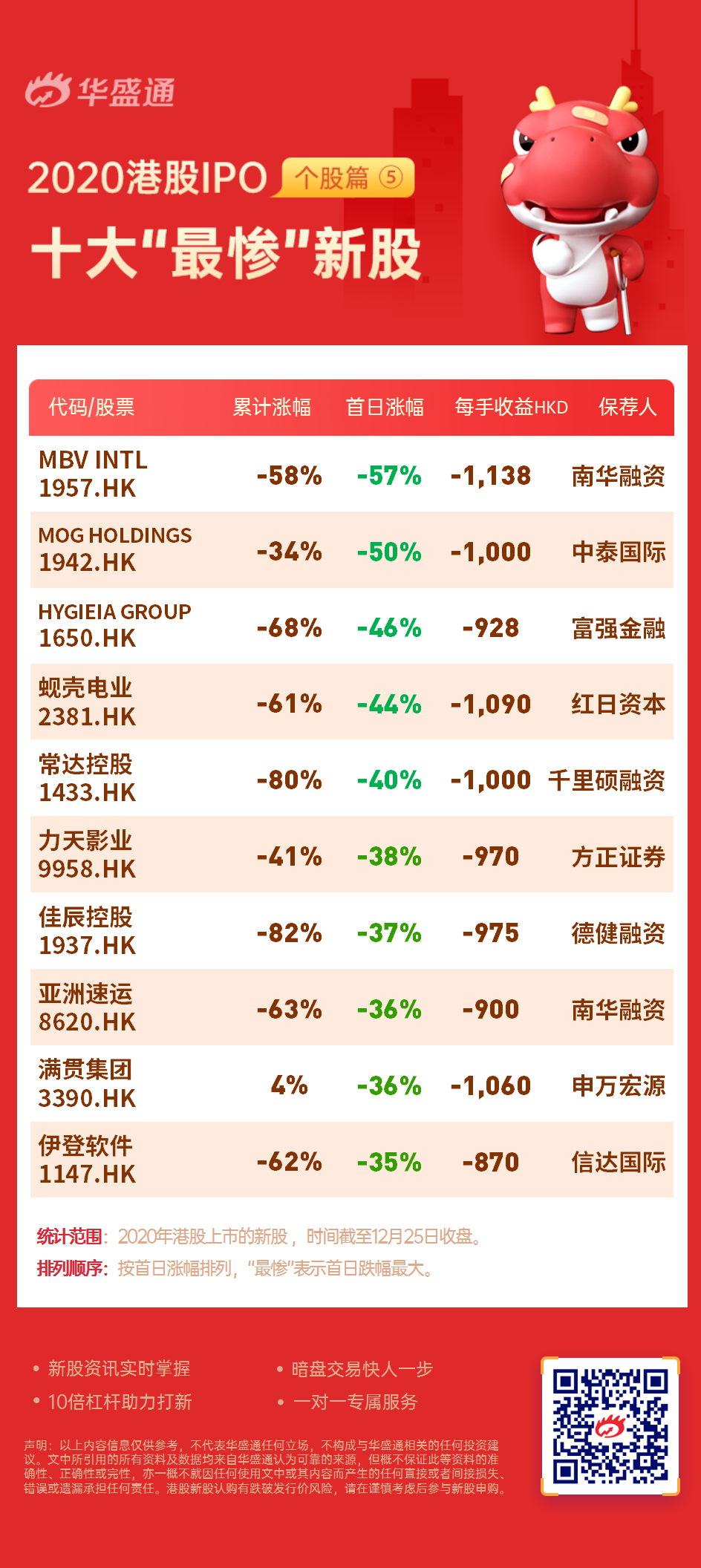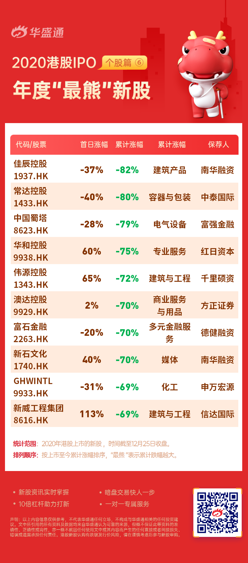 本期,华盛资讯盘点了2020年IPO市场,“首日跌的最惨”、“上市以来最熊”以及“首日涨幅最妖”的前10支新股,来欣赏一下發仔踩过的“雷”:
