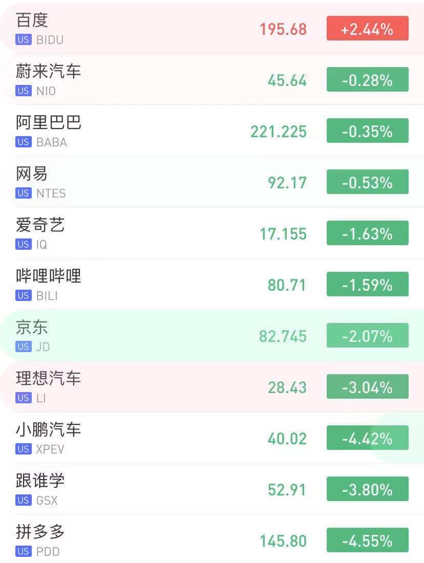 华盛资讯12月28日讯,热门中概除百度外全部下跌!截至发稿,拼多多跌4.55%,跟谁学跌3.80%,小鹏汽车跌4.42%,理想汽车跌3.04%。阿里跌0.35%,跌幅有所收窄,此前一度翻红。