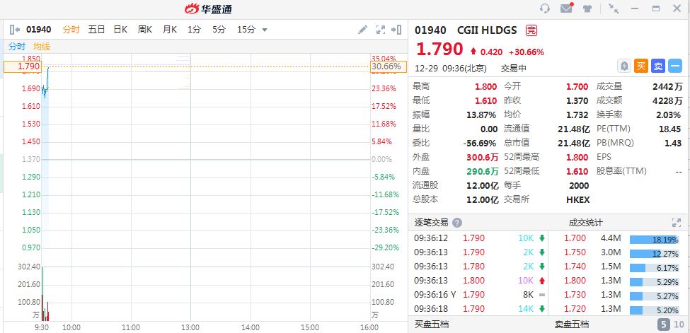 CGII HLDGS(01940.HK)、汇森家居(02127.HK)今日首挂,CGII HLDGS大涨30%,不计手续费,一手盈利840港元,汇森家居则破发。