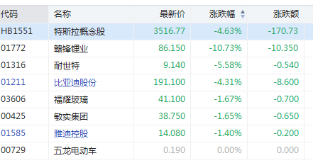 港股特斯拉概念股跌幅扩大 赣锋锂业跌10%