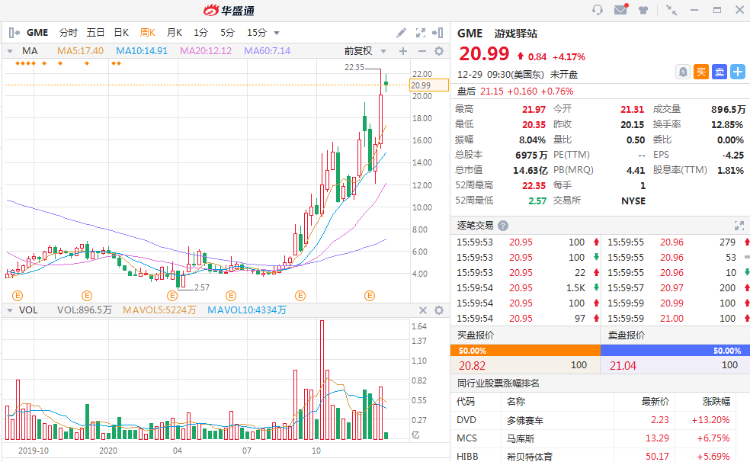 游戏驿站是一家消费电子产品和游戏商品零售商,总部位于德克萨斯州,在10个国家拥有超过5500家零售店。游戏驿站还是《财富》500强公司。该公司股价年初至今上涨近250%。