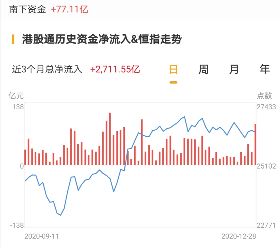 南下资金今日净流入港股77.11亿港元,与周一相比,流入规模有所降低;