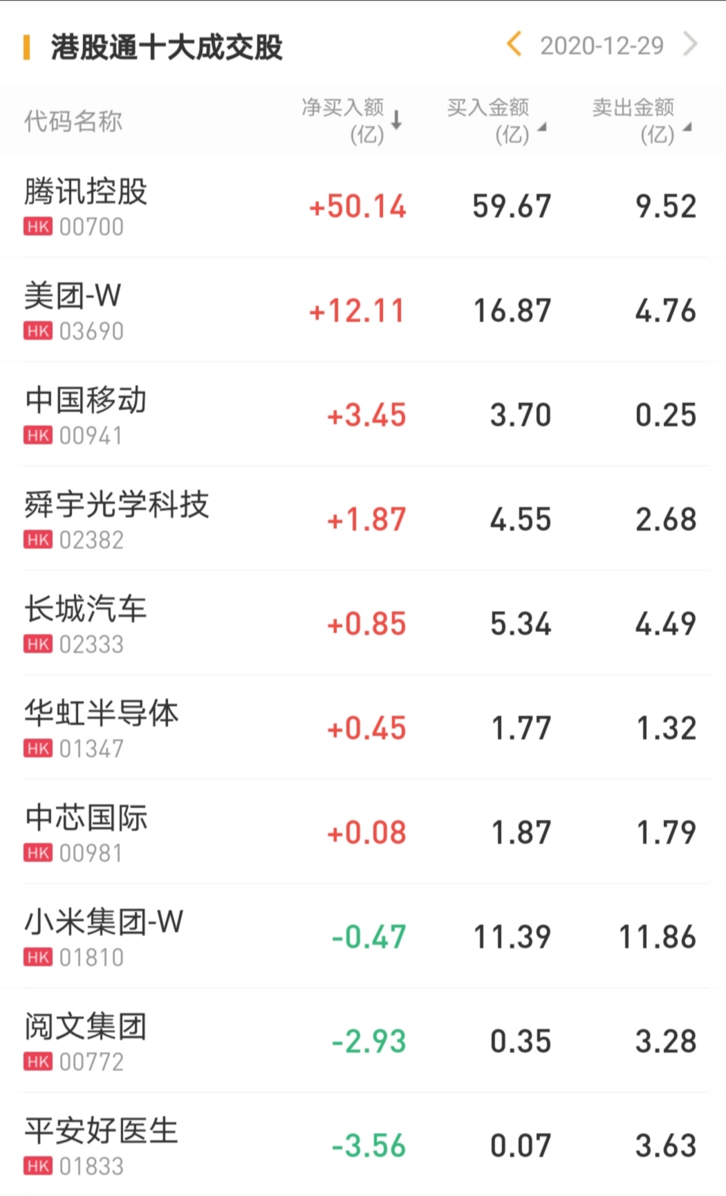 南下资金净卖出平安好医生3.56亿港元,净卖出阅文集团2.93亿港元。