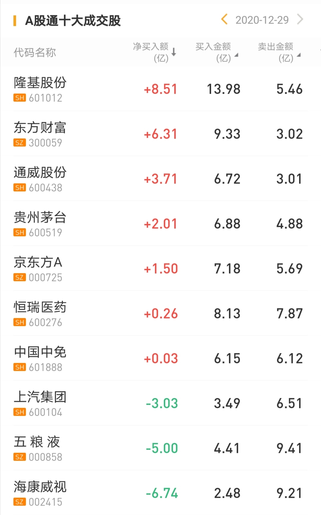 北上资金今日净买入隆基股份8.51亿元,为今日买入之最。此外,北上资金今日净买入东方财富6.31亿元,净买入通威股份3.71亿元。