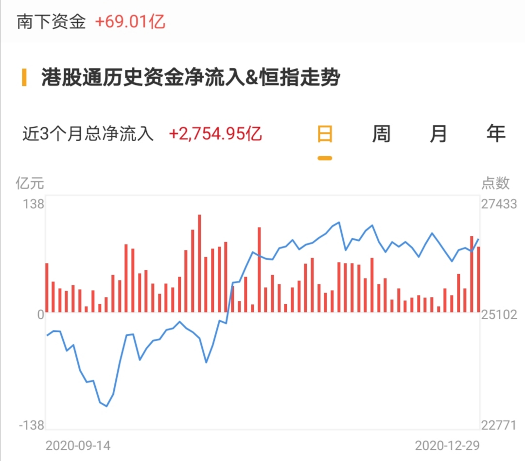 南下资金今日净流入港股69.01亿港元,与周二相比,流入规模有所降低;
