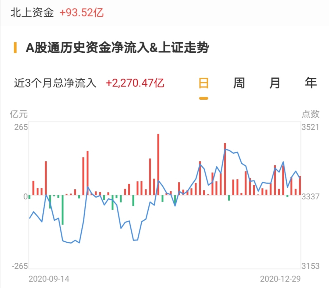 北上资金今日净流入93.52亿元,流入规模大幅增加近25亿元。