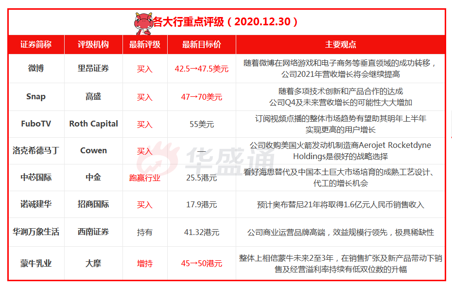 里昂证券分析师Elinor Leung将微博目标价由42.5美元上调至47.5美元,维持“买入”评级。Leung认为,随着微博在网络游戏和电子商务等垂直领域的成功转移,该公司在2021年营收增长将会继续提高。