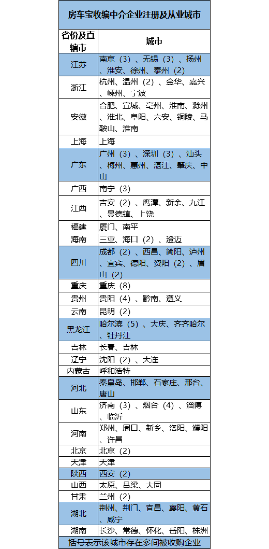 据观点地产新媒体通过企查查统计,房车宝集团股份有限公司旗下,深圳市房车宝销售有限公司141笔对外投资。可以发现,恒大房车宝的收购对象遍布珠三角、长三角、华中、川渝贵、环渤海、西北、东北等主要经济带的重点各级城市。