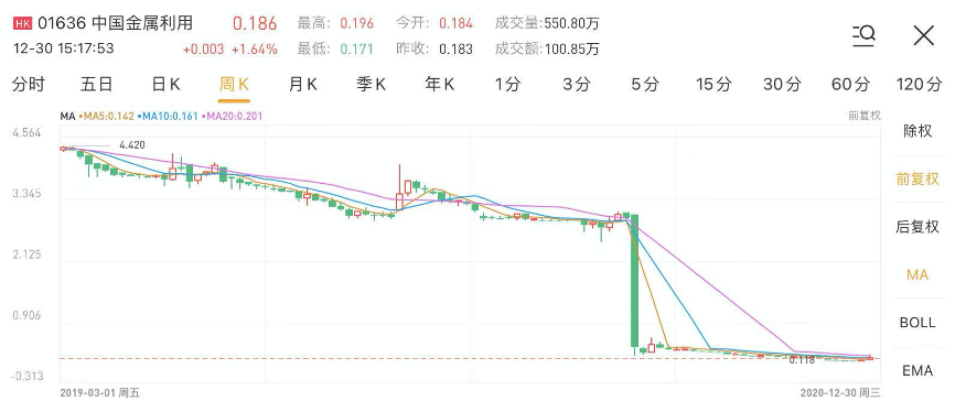今年,港股市场最惨的非中国金属利用(01636)莫属,全年跌幅达到94.87%!