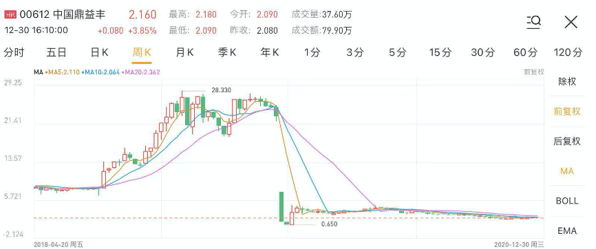 今年年初,停牌近一年后,1月23日,中国鼎益丰宣布复牌。令到持股股民胆寒的是,鼎益丰股价在开盘直线下挫,盘中跌幅超过90%!