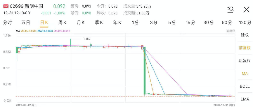 新明中国今年全年大跌92.14%,与文中其他股票类似,也是突然闪崩直接。