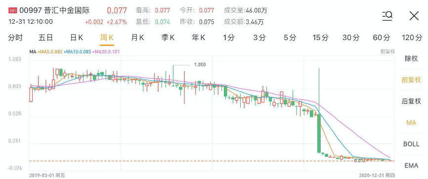 普汇中金国际今年暴跌90.42%!连大股东都被跌到爆仓。