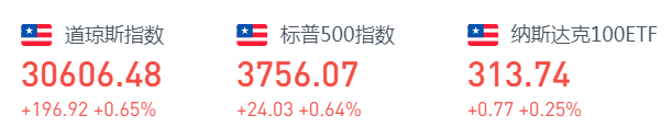 上周四道指与标普500指数周四均创历史最高收盘纪录。截至收盘,道指涨196.92点,或0.65%,报30606.48点;纳指涨18.28点,或0.14%,报12888.28点;标普500指数涨24.03点,或0.64%,报3756.07点。