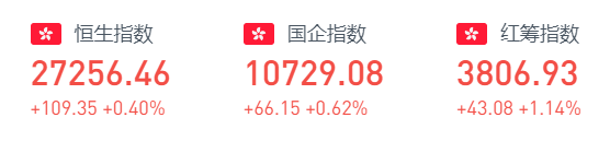 上周四恒生指数开盘涨0.18%,截至收盘,恒生指数涨84.02点或0.31%,报27231.13点,全日成交额达1057.01亿。国企指数涨0.71%,报10738.4点,红筹指数涨0.95%,报3799.56点。