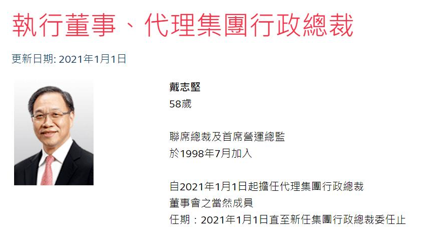 戴志坚1月1日起出任港交所代理集团行政总裁