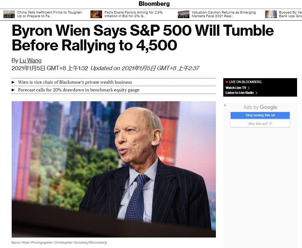 黑石集团(Blackstone)副董事长拜伦·维恩(Byron Wien)和私人财富解决方案集团首席投资策略师乔·齐德(Joe Zidle)今天发布了他们的“2021年十大意外”榜单,其中预测标普500指数在2021年经历回调后可涨至4500点。