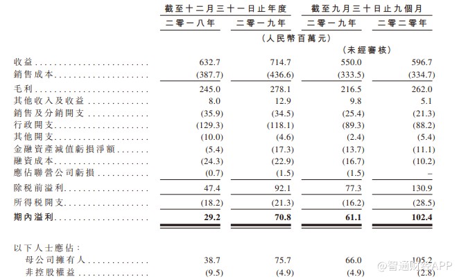 截至2018年及2019年12月31日止年度以及截至2020年9月30日止九个月,公司收益分别为人民币6.327亿元、人民币7.147亿元、人民币5.967亿元,期内溢利分别为人民币2920万元、人民币7080万元、人民币1.024亿元。