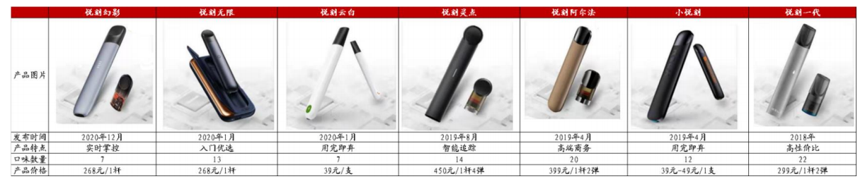 18、19、20Q1-Q3 公司研发费用率分别达 1.6%、2.1%、4.1%,持续加大在雾化液口感、烟具设计等方面的研发投入。悦刻认为用户粘性来自更好的口感和使用体验:
