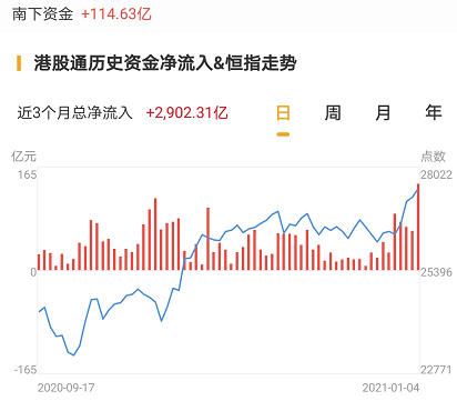 南下资金今日净流入港股114.63亿港元,与周一相比,流入规模下降约23亿港元;