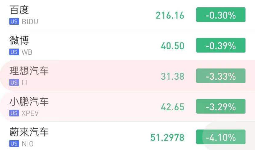 新能源三剑客跌势较深,截至发稿,蔚来跌超4%,小鹏、理想均跌超3%。此外,百度、微博开盘微跌。