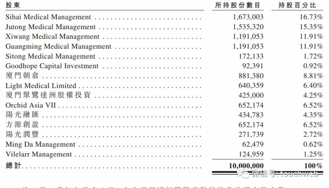 厦门朝翕持股为8.81%,LightMedicalLimited(即朝聚医疗科技的时任股东)持股为6.4%,厦门聚鹭达洲股权投资持股为4.25%;