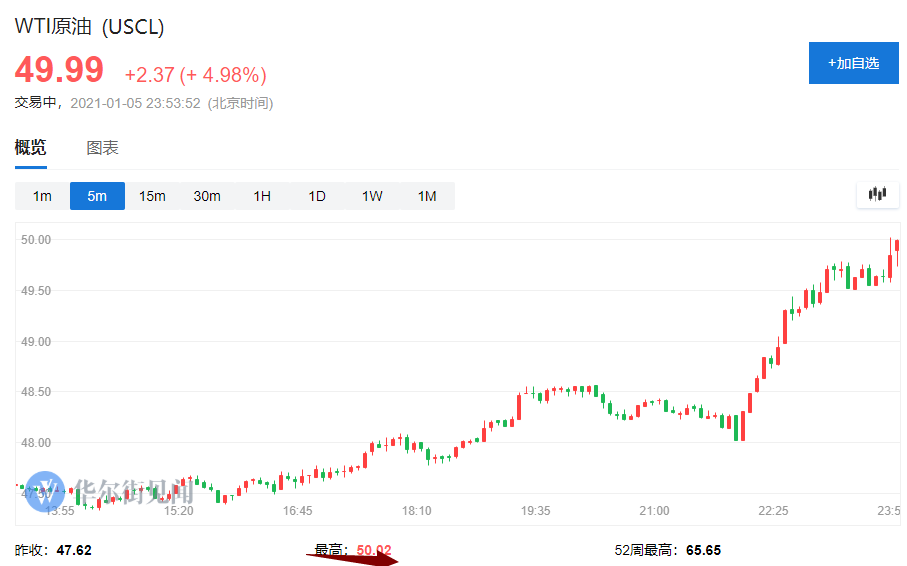 在OPEC+会议结束之后,沙特意外发布声明,宣布自愿进行单方面大幅减产。这一举动让所有人意外,国际油价也进一步走高,WTI 2月原油期货一度大涨逾5%,2020年2月以来首次冲上50美元/桶大关。布伦特原油3月期货也大涨近5%,至54美元/桶附近。