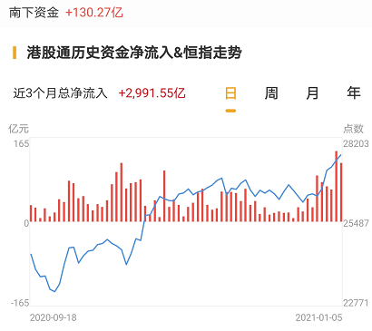 南下资金今日净流入港股130.27亿港元,与周二相比,流入规模小幅上升;