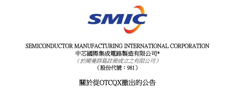 1月6日消息,中芯国际1月6日晚间公告,1月6日,公司获OTCQX市场的营运者通知,根据行政命令和相关监管指引,公司将从2021年1月6日(星期三)交易结束时被撤出OTCQX市场,公司的证券(SIUIF,SMICY)将不再具资格在OTC Link ATS上报价或交易。