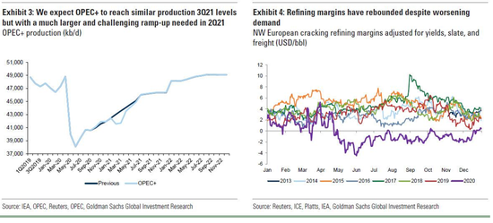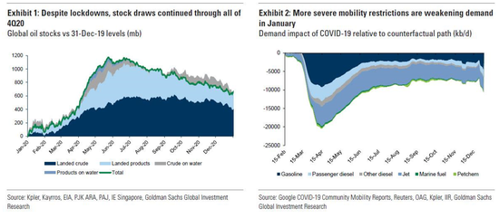 与此同时,高盛关于石油需求的高频指标也表明,更激进的封锁措施的回归已经在抑制需求,该行将1月和2月的石油需求从12月的9350万桶/天下调至9250万桶/天。