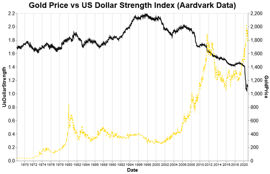 他认为,黄金作为一种价值储存手段和货币,它的价值应该与货币供应和美元的走势密切相关。