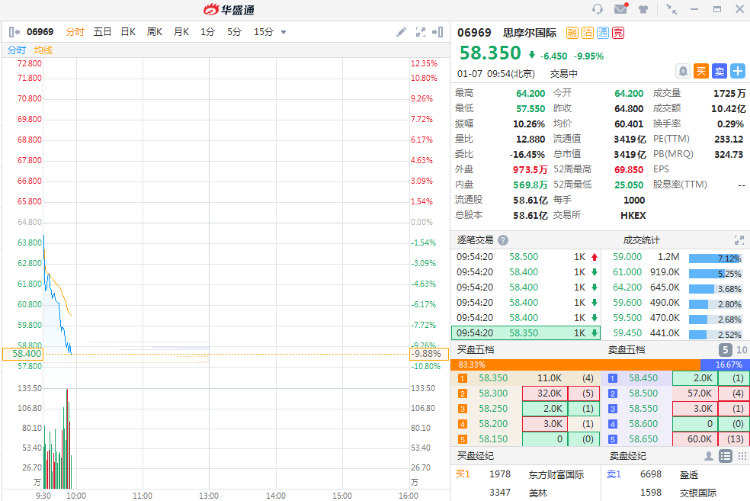 根据wind数据,思摩尔国际1月10日将有超2亿股解禁,公司股价大跌9%,最新市值3419亿港元。