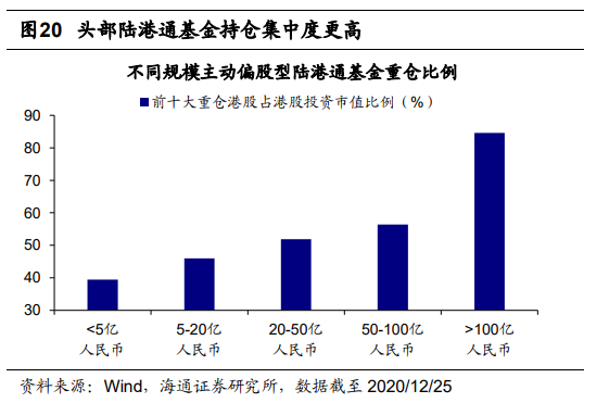 (1)市值规模:机构普遍青睐大市值龙头。截至 2020/12/25 外资前 50 大重仓股平均市值为6295 亿港元,内资为 5103 亿港元,港资为 6501 亿港元,均远高于全部港股的 243 亿港元;