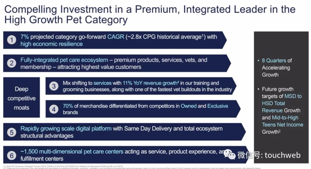 美国宠物产业包括宠物食品、宠物用品、医疗服务和非医疗服务,是一个不断增长的市场,相比于Petco或Chewy,国内宠物企业或宠物电商小得多,中国宠物市场分散,发展依然是任重道远。
