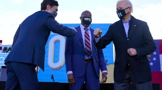 在赢下佐治亚州两个席位后,美国民主党与共和党在参议院席位变成50:50。在“打成平手”后,凭借当选副总统兼参议院议长哈里斯的关键1票,民主党实现了总统、众议院和参议院的“蓝营横扫”。