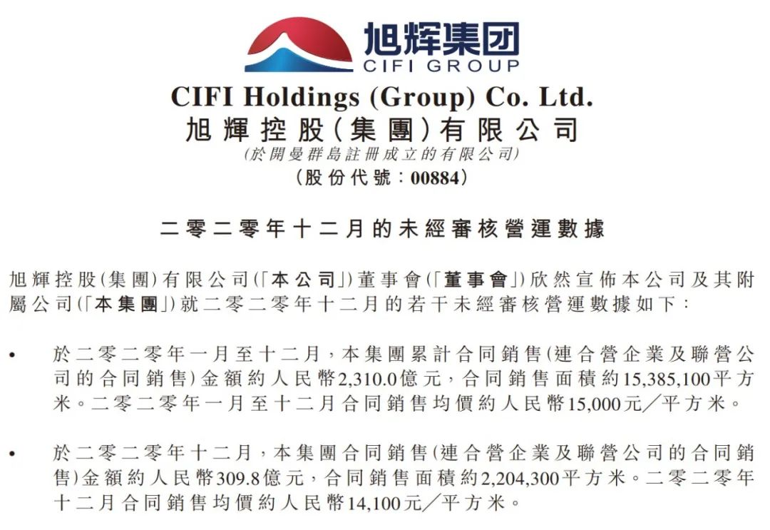 2020年12月,合同销售金额约人民币309.8亿元,合同销售面积约2204300平方米。合同销售均价约14100元/平方米。总的来说,旭辉比彰泰高了几个级别。