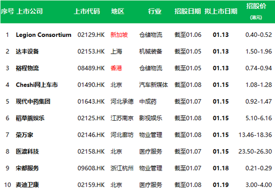 本周有10家新股招股,8家来自内地、1家来自香港、1家来自新加坡,全部已经截止招股,分别为: