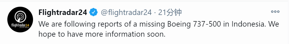 飞机航行轨迹监测网站Flightradar24刚刚消息称,失踪航班为一架波音737-500飞机,这架飞机机龄已有26年。