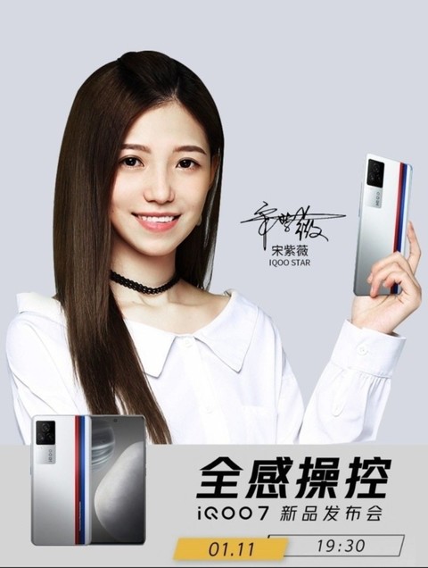 另外一部搭载高通骁龙888处理器则是iQOO 7,1月11日将会发布,MonsterBeat立体双扬,MonsterTouch屏下双控压感、MonsterEngine双路线性马达,带来电竞级的全感操控,另一大亮点是全系标配120W 闪充,三星AMOLED屏幕支持120HZ高刷新率,iQOO7还将延续性能电竞闪充卖点,然后这次直接美女产品经理宋紫薇代言。