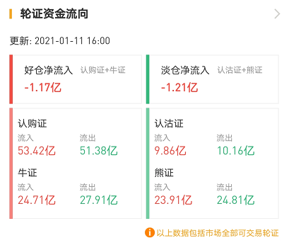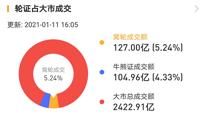 其中,窝轮总成交127亿港元,牛熊证总成交104.96亿港元。