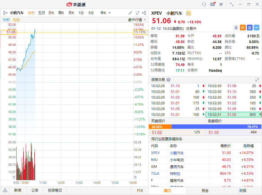 华盛资讯1月12日讯,汽车股盘中集体走高。小鹏汽车涨超15%,小牛电动涨9%,通用汽车涨7.4%,Nikola涨6%,特斯拉涨超5%,理想汽车涨4.4%,蔚来汽车由跌转涨,现涨超1%。
