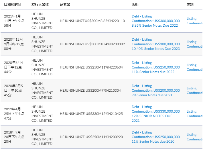 无独有偶,当天蓝光发展公告公司旗下“HejunShunzeInvestmentCo.,Limited”境外发行3亿美元、期限364天的无抵押固定利率债券。