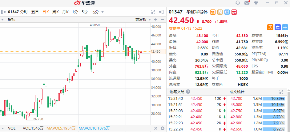 从股价表现上看,华虹半导体2020年股价上涨近150%。