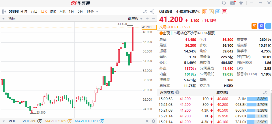 从股价表现上看,1月至今,中车时代电气股价上涨超20%。